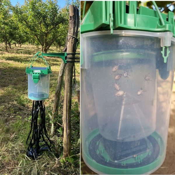 Le trappole vanno installate a partire dalla fuoriuscita degli adulti dai ricoveri invernali, tra marzo e aprile, posizionandole all’esterno e a distanza dal frutteto da proteggere. È consigliato posizionarla nelle aree aziendali più favorevoli all’ingresso di H. halys, in particolare nelle zone perimetrali delle colture prossime a siepi e edifici, mantenendo una distanza minima di 50 metri tra una trappola e l’altra.