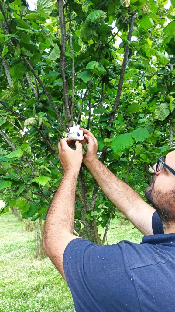 Le metodologie tradizionali di monitoraggio della fase di migrazione di Phytoptus avellanae prevedono generalmente l’impiego di strisce di nastro biadesivo applicate in prossimità delle galle. Tuttavia, tale approccio risulta laborioso e richiede un notevole impegno da parte dei tecnici coinvolti.